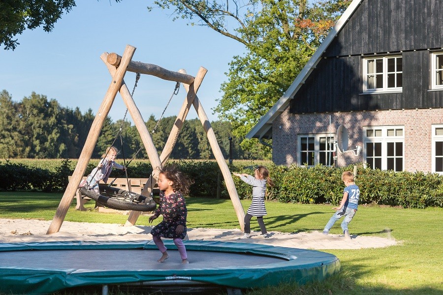 Luxe (groeps)vakantiehuizen met hottub op een terrein met veel speelmogelijkheden in Twente.