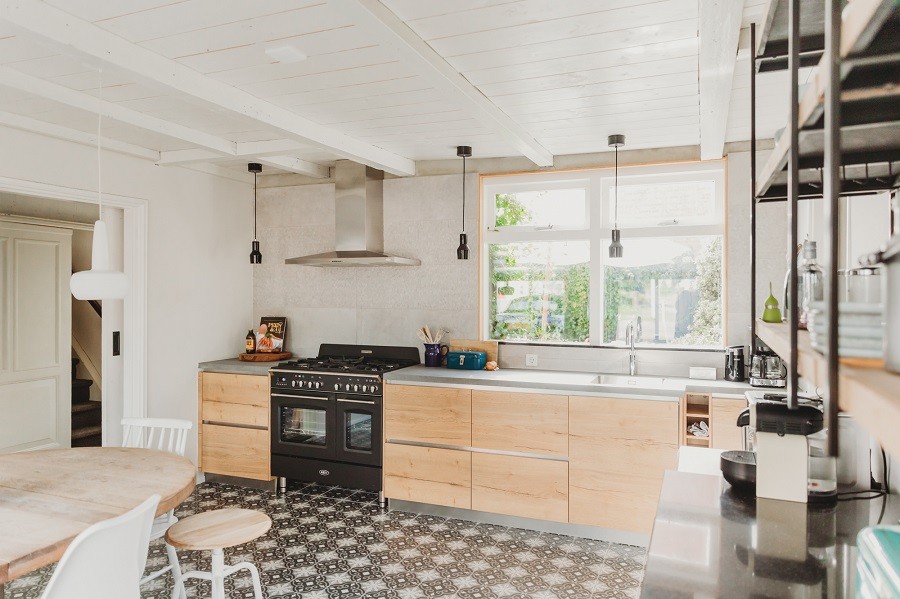 met een toefje design. Het huis is licht en fris met witte en vergrijsde tinten. Aan de inrichting is veel aandacht besteed. Brocante vondsten worden gecombineerd met modern leefgemak. Zo is het heerlijk slapen onder het balkenplafond in de masterbedroom, voorzien van Aupingbed met Pullman matrassen. De leefkeuken voorziet in alle wensen van nu, waarbij het oude granito aanrecht behouden is gebleven.Er is een magnetron, vaatwasser en oven, en ook een 5-pitsgasfornuis met wokbrander. De badkamer, die in 2012 is gerealiseerd, doet luxe aan met het mooie tegelwerk, het ligbad en extra toilet.