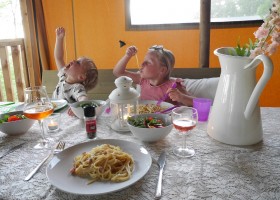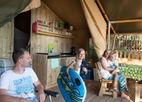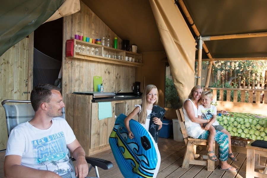Meer slaapplaatsen nodig? Of willen de kinderen een eigen tentje? Het is ook mogelijk om een extra koepeltentje te bespreken. En ook kinderbedjes en -stoelen zijn te regelen. Iedere tent is uitgerust met een speelgoedmand. En 's avonds is het heerlijk genieten op de houten veranda met luifel die uiteraard bij de Safaritent en Lodgetent hoort!